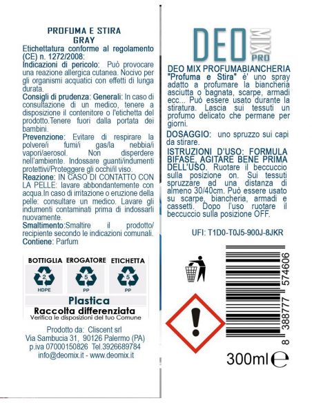 Deo Mix Casa Gray è lo spray fresco e sensuale adatto a profumare il bucato asciutto o bagnato. Il profuma bucato