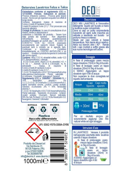 Deo Mix Detersivo Lavatrice Felce e Talco Super Concentrato