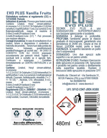 Deo mix Evo Plus 4 in 1 Vanilla Fruits - Sgrassa Profuma Igienizza Lucida