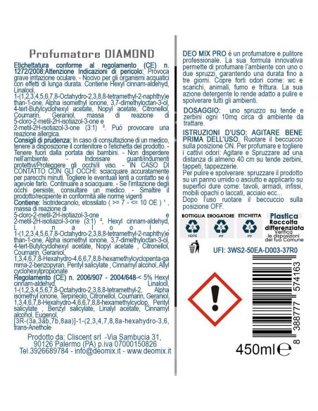 Deo Mix Pro Diamond 450 ml Profumatore per Ambienti Fresco e Vivace